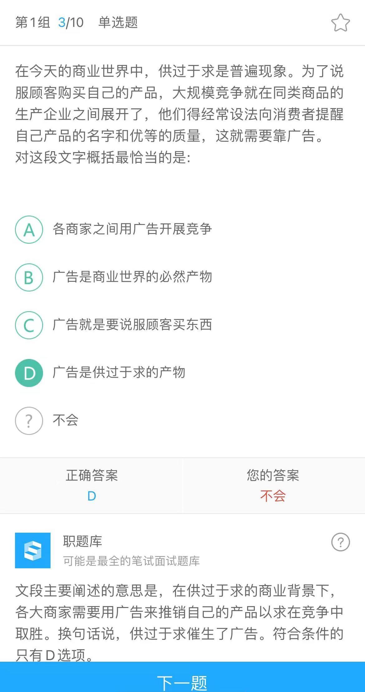 考情分析 东方财富2025届预测测评题型为: 言语理解、统计图表、数字空间能力(图形推理) 1.历年真题 东方财富2024测评试题与答案解析 东方财富2023真题试卷与答案解析 东方财富2022真题试卷与答案解析 东方财富2021真题试卷与答案解析 2.专项练习 东方财富专项练习试卷与答案解析-言语理解 东方财富专项练习试卷与答案解析-统计图表 东方财富专项练习试卷与答案解析-数字空间能力 3.专项练习-心理测评 东方财富专项练习-心理测试 4.内容展示 |