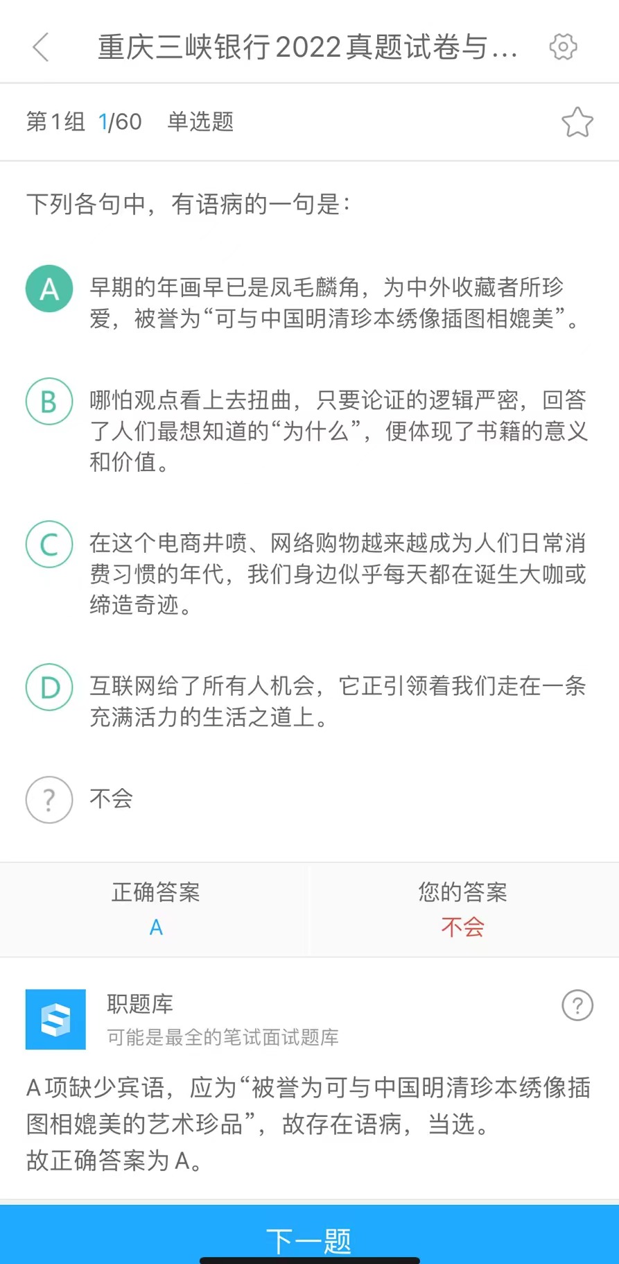 重庆三峡银行招聘考试 适用于2026届,持续更新中...... 1.已购对应课程用户赠送题库,可联系客服开通,请勿重复购买! 2.已购题库后再次购买课程的,可联系客服对题库做退费处理! 3.温馨提示:题库有效期为90天,请按时练习! ★题库科目导航:银行—重庆三峡银行 | |||